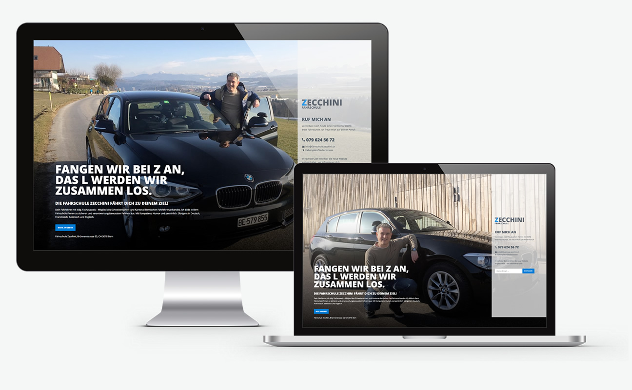 Die Fahrschule Zechini ist in den Regionen Bern, Köniz, Schliern, Wabern, Belp, Ostermundigen und Bümpliz, Niederwangen, Flamatt unterwegs. Inhaber Thomas Zecchini hat mich gebeten, die Webseite zu erstellen, damit aktuelle Daten und Angebote, sowie allgemeine Informationen schnell und einfach zugänglich sind. Ausserdem wünschte er, die Trefferquote bei Google durch eine Suchmaschinen Optimierung zu verbessern. Die übersichtliche Webseite haben ich vorerst als einfache Onepage aufgebaut und wird später zu einer Multipage umstrukturiert.