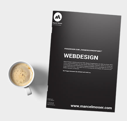 Laden Sie das entsprechende Dokument auf Ihren Desktop und füllen Sie es vor einem Gespräch mit mir soweit möglich aus.Bei Beginn eines Projektes steht immer ein ausführliches Gespräch. In diesem Briefing versuche ich mehrere Sachen herauszufinden. Zum Beispiel; Was macht Ihre Firma? Welche Produkte stellen Sie her? Welche Zielgruppe möchten Sie ansprechen? Natürlich auch, was Sie von mir erwarten und was Sie damit erreichen möchten?