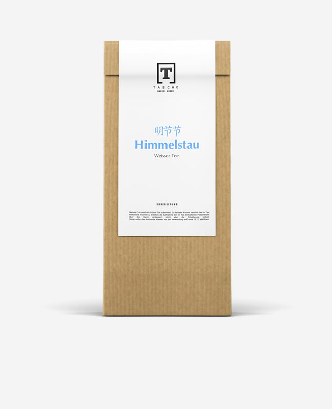 Entwicklung eines Packagingdesigns für das Unternehmen Teehaus mit seinem beliebten Himmelstau-Tee. Reichhaltige Mischung orientalischer Duftnoten aus weissem Tee mit Zitronenschale und einen Hauch Bergamotte.